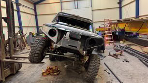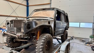 Tot nu toe bestond het project vooral uit technisch werk: motor, ophanging, kooi, kabelbomen. Alles ruw, kaal en functioneel. Maar nu komt er voor het eerst een stukje uiterlijk bij kijken â en dat maakt indruk. Het zwarte uiterlijk geeft de auto een serieuze, robuuste uitstraling. Precies zoals we het voor ogen hadden.